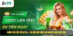 Khi bước vào sảnh casino trực tuyến của EV99, bạn sẽ như lạc giữa bầu không khí sang trọng chẳng khác gì các sòng bạc tại Macau hay Las Vegas. Hình ảnh sắc nét, âm thanh chân thực và các trò chơi nổi bật như roulette, blackjack, baccarat, slot game luôn sẵn sàng chờ đón. Bên cạnh đó, ưu đãi được cập nhật thường xuyên giúp người chơi vừa tận hưởng vừa có cơ hội tăng phần thưởng.